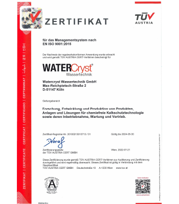 Tecnología alemana certificada (DVGW) que evita las incrustaciones de cal sin consumo de sal,